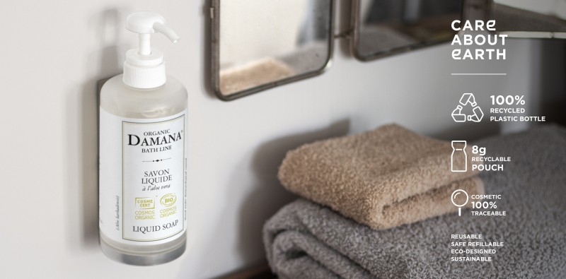 DAMANA Organic Bath Line, est une ligne de bain certifiée Bio par COSMECERT et accréditée COSMEBIO.