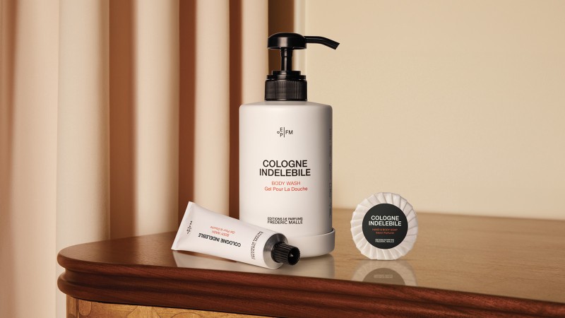 Após o sucesso da nossa gama hoteleira 'Eau De Magnolia', temos o orgulho de apresentar a nossa segunda gama em colaboração com as Edições de Parfums Frédéric Malle, que inclui outra fragrância exclusiva: 'Cologne Indélébile', criada pelo famoso perfumista Dominique Ropion.